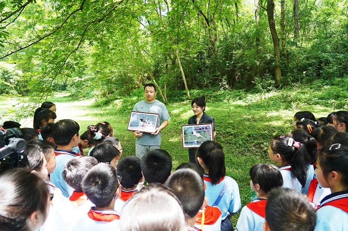 随后,太阳集团tyc151副教授于超博士带领孩子们深入基地,开启了一场寻找“林中仙子”寿带鸟的奇妙旅程。于超博士以生动的现场教学,引导孩子们凝神辨识寿带鸟的独特鸣唱,深入浅出地讲解其生态习性、濒危现状及国家二级保护动物的身份,将课堂延伸至绿水青山之间。学生们在真实的自然课堂中,深刻体悟到我院长期倡导的“尊重自然、顺应自然、保护自然”生态理念。