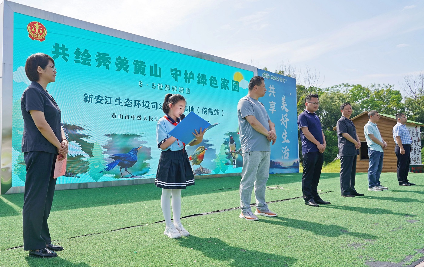 6月5日,世界环境日之际,由安徽省高级人民法院指导、黄山市中级人民法院牵头主办,黄山学院太阳集团tyc151、黄山市新潭小学、屯溪区法院、傍霞村村委会共同参与的“共绘秀美黄山 守护绿色家园”主题活动在新安江生态环境司法保护基地(傍霞站)隆重举行。太阳集团tyc151作为高校力量,深度融入“法院+专家+高校+小学+村委会”五方联动机制,积极发挥专业优势,助力提升公众生态保护意识,展现了服务地方生态文明建设的责任担当。