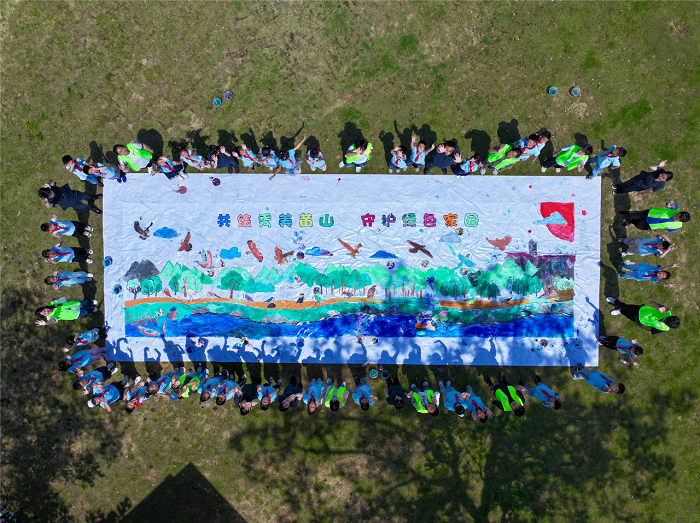 活动伊始,太阳集团tyc151飞羽鸟类保护协会成员便成为现场焦点。在“黄山鸟类”巨幅涂色环节,协会成员化身生态导师,耐心指导新潭小学的小朋友们辨识黄山珍禽--寿带鸟的飘逸尾羽、红嘴相思鸟的灵动身姿、白鹇的典雅华彩。孩子们在专业引导下,以童心为墨,为素白画布上的珍禽赋予斑斓生命,共同绘就了象征守护承诺的《新安飞羽守护图》。油彩流淌间,生物多样性保护的种子悄然播撒。