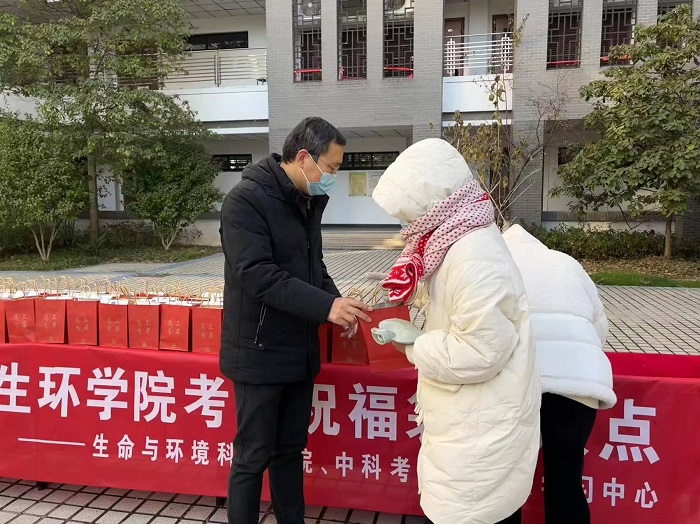 12月20日,当清晨的第一缕阳光悄悄洒向校园,生环学院领导、全体辅导员老师,来到太阳集团tyc151楼,将福袋发放到全院近400位考研学子手中,在寒冷的冬日给考研学子们送去暖心关怀。