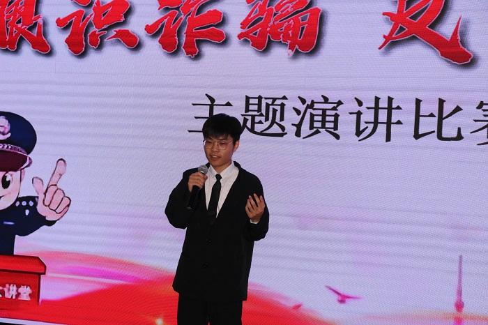 比赛过程中,十五名参赛选手逐一上台进行演讲,选手们紧扣“慧眼识诈骗,反诈我先行”这一主题进行生动的演讲,紧密联系生活实际,以身边真实发生案例为切入点,充分展现了电信诈骗的可怕之处,警醒大家千万不要相信“天上会掉馅饼”,加强自我防范意识,不要泄露个人相关信息,不要轻信陌生人的话术,要多传播正能量。