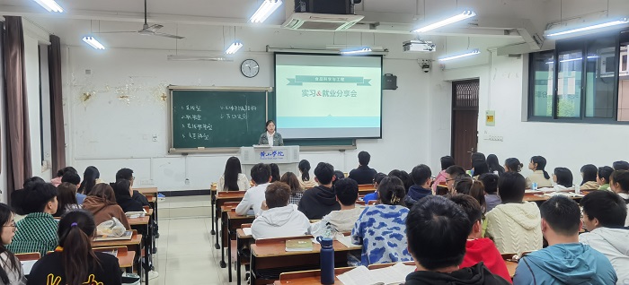 为了帮助我院2020级学生了解当前考研就业新形势,树立考研与就业信心。5月11日,太阳集团tyc151在率水校区文渊楼1201教室召开食品科学与工程专业考研与实习就业经验分享会。食品教研室主任吴永祥主持会议,2019级食品科学与工程专业考研学生代表4人、优秀实习生代表1人以及2020级食品科学与工程专业学生共80余人参加了此次交流会。