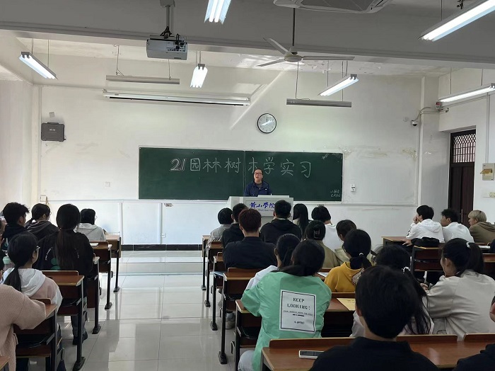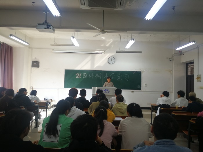 2023年10月24日在文渊楼1110教室召开了《园林树木学》课程实习动员会,会议由园林专业潘健教师主持,教研室副主任崔珺、辅导员杨蒙和2021级园林专业全体学生参加此次会议。