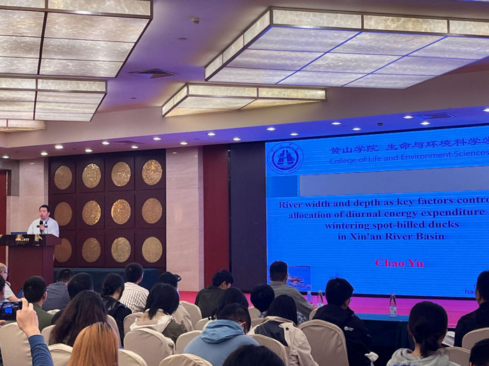 本次会议由中国动物学会鸟类学分会主办,由南京师范大学和生态环境部南京环境科学研究所承办。来自全国各个省市、直辖市、自治区以及其他不同国家和地区的939名代表共聚一堂,分享和交流近年来鸟类学研究的丰硕成果。我院于超博士在鸟类行为学单元作了题为《River width and depth as key factors controlling allocation of diurnal energy expenditure for wintering spot-billed ducks in Xin'an River Basin》的专题报告,该研究成果依托黄山学院新安江流域生态环境保护研究中心(XECC),向国内的同仁展示了黄山学院在新安江流域开展的鸟类学研究工作。