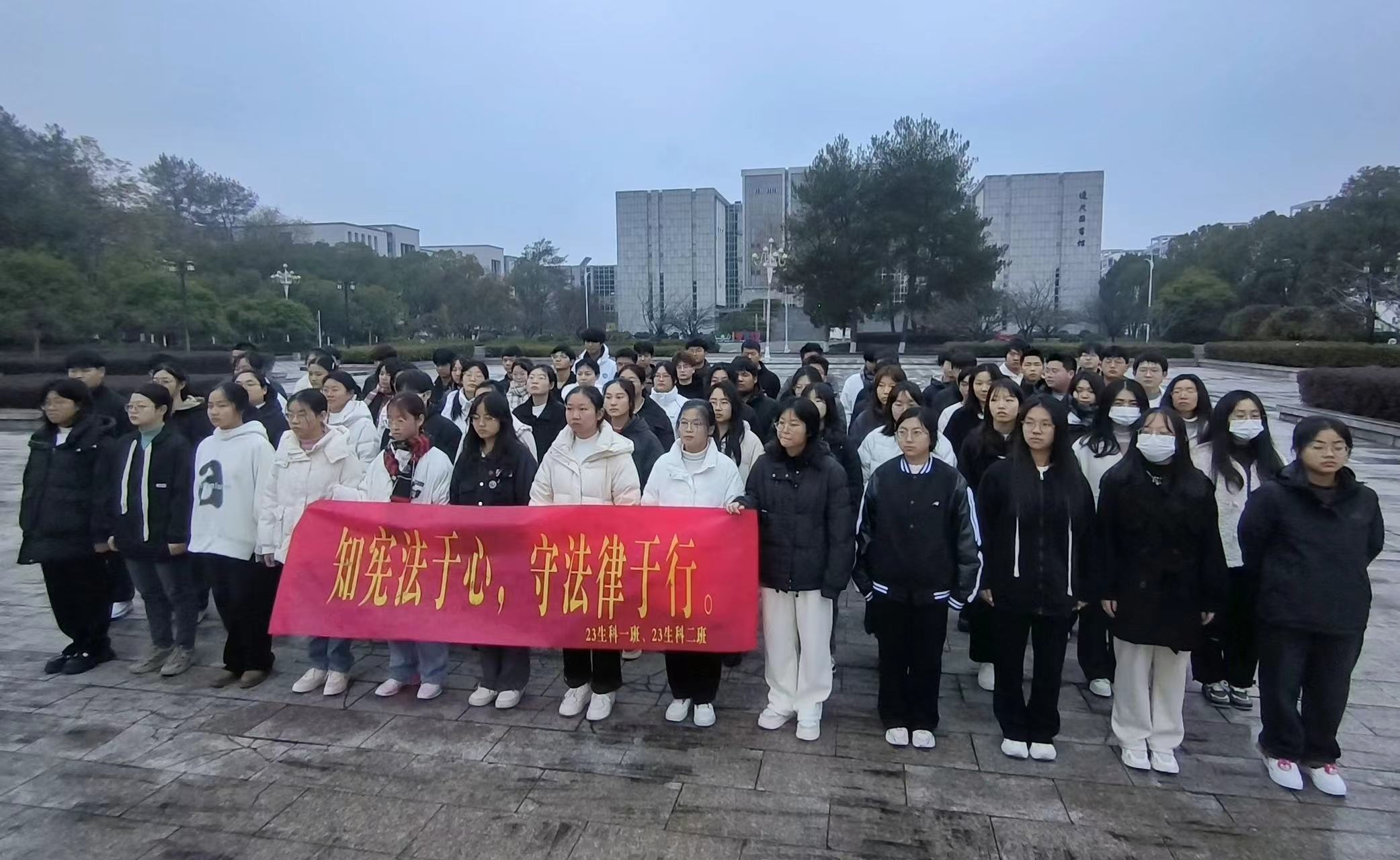 今年12月4日是我国第十个“国家宪法日”,也是全国法制宣传日。为认真学习贯彻习近平法治思想,进一步增强学生的宪法意识和法治观念,推动校园形成弘扬宪法精神,维护宪法权威的良好氛围,12月4日上午,太阳集团tyc151在喷泉广场举行升国旗仪式暨“12.4国家宪法日”主题活动。太阳集团tyc151党委副书记万志兵、专职辅导员方芳、2023级生物科学专业新生参加了此次升旗仪式。