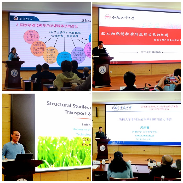 在完成了安徽省生物化学与分子生物学学会2023年度工作报告、2024年工作计划和理事增选等重要事项的讨论和审议后进行了黄山学院教学科研经验交流专项会议。安徽师范大学朱国萍教授分享了国家级一流课程《分子生物学》建设经验,合肥工业大学刘健教授分享了国家级科研项目申请经验,中国科学技术大学孙林峰教授分享了科研前沿攻关经验,安徽大学吴庆喜教授分享了本科生科研能力培养经验。交流领域涵盖了课程建设、科研项目和人才培养,报告内容精彩纷呈,受到了与会者一致好评。