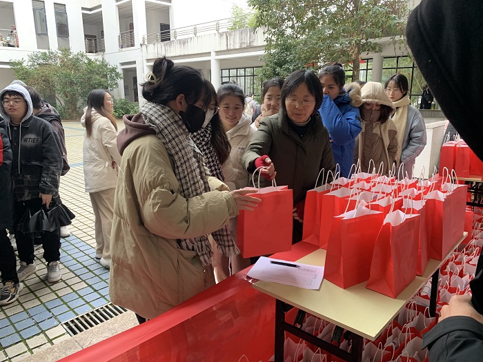 祝福袋中装有笔袋、中性笔、橡皮、2B铅笔、口罩等考试用品和生活用品,同时放入含有院党委书记吕顺清、副院长潘健签名的考研祝福上岸卡。发放现场,全体考研学生有序领取了考研祝福礼袋,纷纷表示感谢学院的温暖祝福。