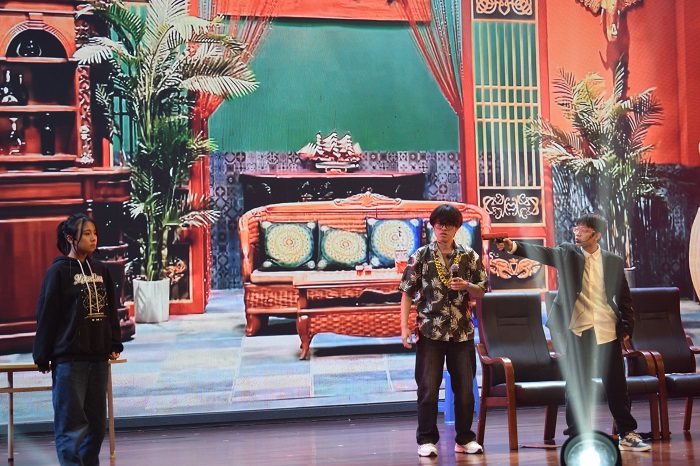 晚会伴随着灯光秀和火热的乐队演奏拉开了序幕,现场灯光将整个舞台照得如同梦幻一般,现场观众共同融入到了晚会的欢快气氛中。晚会精彩纷呈,节目类型多样,有歌曲、小品、舞蹈、模特走秀、配音、朗诵等13个节目。