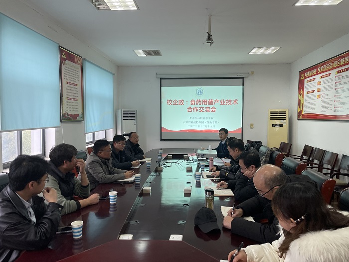 12月19日下午,祁门县小路口镇镇长许跃飞、副镇长江超,镇综治中心主任陈飞,黄山徽牧农风味食品有限公司总经理吴文辉,黄山徽珍食品有限公司总经理徐江,黄山食卓商贸有限公司总经理彭林等一行来我校我院开展校企政合作交流。安徽省科技特派团—屯溪区农业特色产业科技特派团团长佘新松及骨干教师胡长玉、甘卓亭、姚婷、吴永祥(现挂职市农业农村局)、吴丽萍等参加会议,会议由吴永祥主持。