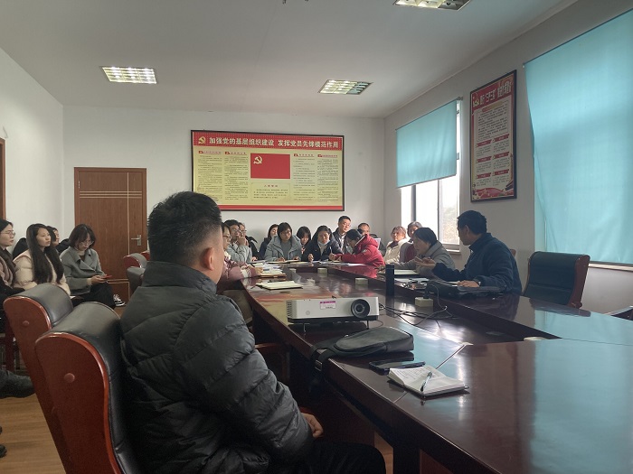 潘健副院长(主持)传达了学校第六次本科教育教学审核评估工作推进会议精神,要求全体教职工要进一步提高思想认识和政治站位,凝心聚力,确保在学校要求完成时间内高标准完成材料准备工作