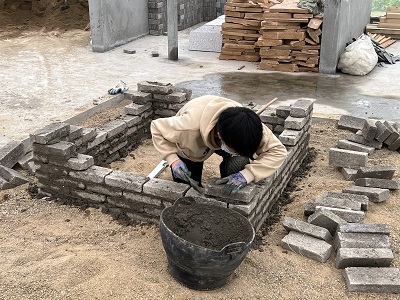 砌筑模块是运用专业技能和工具切割、制作和安装天然石材、预制混凝土构件、钢板等用于花坛、景墙等构筑物的施作,并力求切割面平顺、制作与安装尺寸精准。