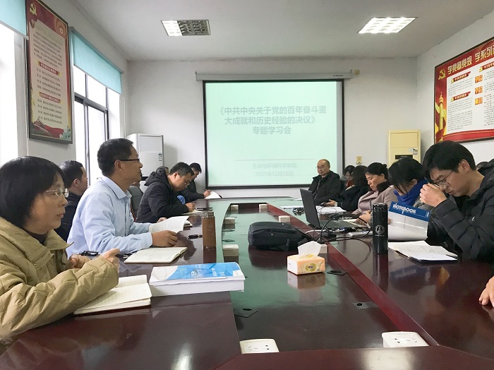 为深入贯彻落实党的十九届六中全会精神,12月15日,生环学院召开专题学习会,集中学习《中共中央关于党的百年奋斗重大成就和历史经验的决议》。院党委书记吕顺清、院长佘新松、副书记万志兵、副院长潘健,各党支部书记及全体教职工参加学习。