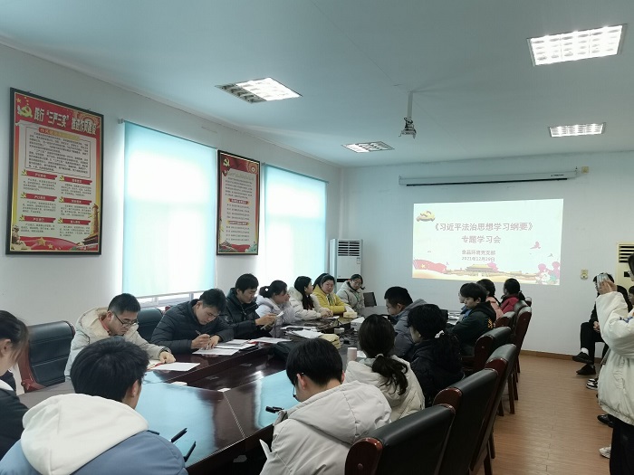 为深入学习贯彻习近平新时代中国特色社会主义思想特别是习近平法治思想,12月29日,食品环境党支部召开专题学习会,集中学习《习近平法治思想学习纲要》。支部书记徐良玉、副书记王秋阳、组宣委员罗毅、纪检委员吴丽萍以及51名党员参加会议。会议由徐良玉主持。